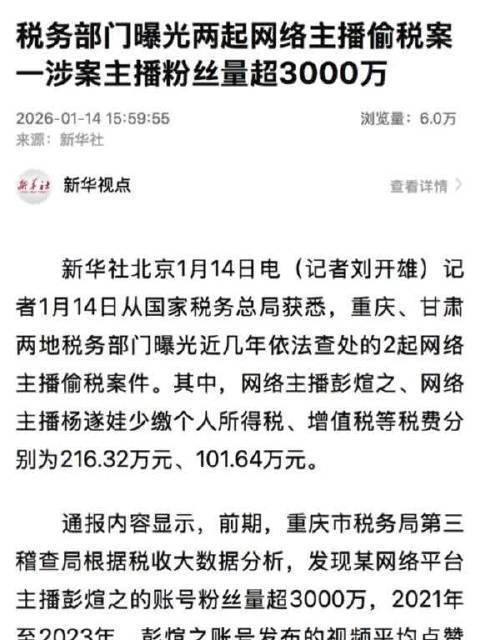 2026-03-19 01:54:00分类:应用阅读(66901) 2026年春节刚过,税务部门一纸通报让坐拥3000万粉丝的网红彭十六彻底跌下神坛。这位以古风变装视频走红的95后主播,因2021至2023年间隐匿收入216.32万元,被追缴税款、滞纳金及罚款合计415.05万元,全网账号同步禁言。从甜美元气的汉服少女到偷税被罚的负面典型,彭十六的坠落轨迹,再次撕开了网红经济税收监管的裂缝。